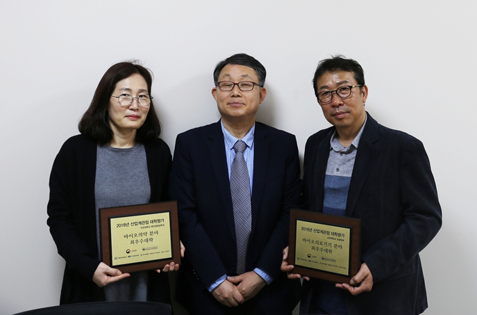 건양대 제약생명공학과/의공학부, 산업계 관점 대학평가 최우수 획득 건양대학교(총장 이원묵) 제약생명공학과와 의공학부가 23일 서울 세브란스빌딩에서 열린 2018년 산업계 관점 대학평가 결과세미나에서 최우수대학으로 선정됐다. 교육부와 기획재정부 및 경제 5단체 등이 공동으로 시행하는 산업계 관점 대학평가는 산업계가 원하는 핵심 직무역량, 필수 교과목 등을 직접 제시하고 대학교육이 이를 잘 반영하고 있는가를 평가함으로써 산업계 요구와 대학운영 교육과정의 불일치를 최소화하는 것을 목적으로 하는 평가제도다. 이번에 수상한 건양대 제약생명공학과는 바이오의약 산업분야에서, 의공학부는 바이오의료기기 산업분야에서 각각 산업계의 분야별 직무수행에 최적합한 것으로 평가됐다. |