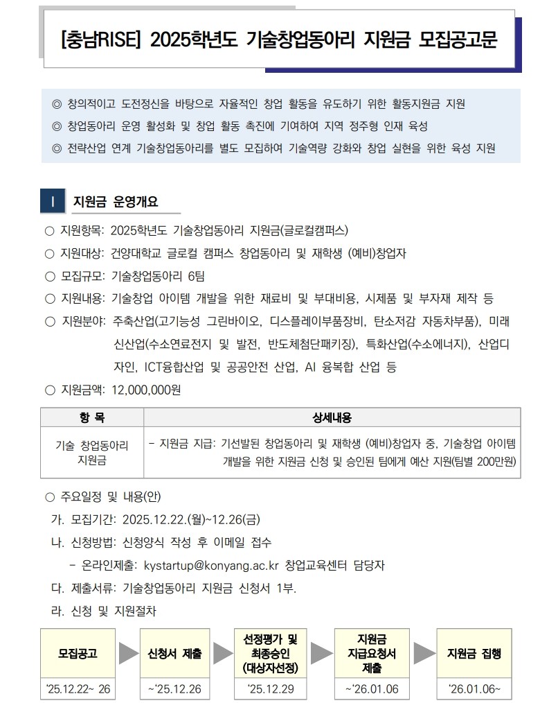 | 제목 | [충남RISE] 2025학년도 기술창업동아리 지원금 모집공고 | ||||