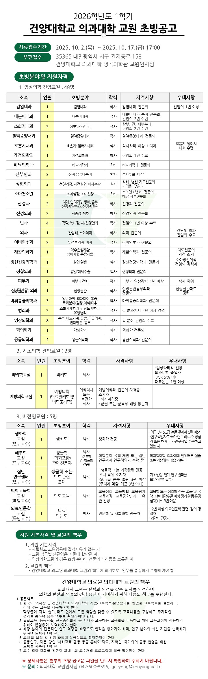 | 제목 | 2026학년도 1학기 건양대학교 의과대학 교원 초빙공고 | ||||