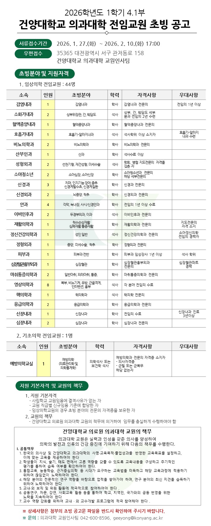 | 작성자 | 의과대학 교원인사팀 | 등록일 | 2026-01-27 | 조회 | 549 |