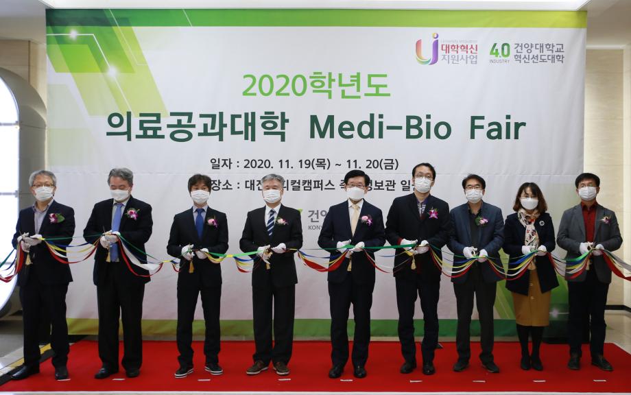 건양대학교(총장 이원묵) 의료공과대학(학장 김진수), 공학교육혁신센터(센터장 강병익), 의료공학실전문제연구단(단장 오도창)과 대학혁신지원사업단(단장 최은규)이 주관한 ‘2020 KYU MediBio Fair’가 지난 19일부터 20일까지 건양대 대전 메디컬캠퍼스 죽헌정보관에서 진행됐다. 학과별 우수한 졸업작품 전시와 의료공학을 중심으로 설계된 교육과정 결과물 공유를 통해 재학생들의 자긍심을 고취하고 자기주도학습능력을 극대화하기 위해 마련된 이번 행사는 건양대 이원묵 총장을 비롯해 의료공과대학 각 학과 재학생들이 참여한 가운데 진행됐다. 창의아이디어 경진대회, 의산학포럼, 의료신소재 학술제 등 다양한 프로그램으로 구성된 이번 행사에서는 특히 재학생들의 졸업작품 및 캡스톤디자인 우수작품 등 총 100여 개의 성과물이 죽헌정보관 로비와 각 학과 복도에 전시되며 눈길을 끌었다.