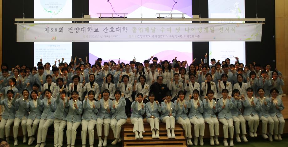 건양대 간호대학, ‘나이팅게일 선서’로 미래 간호사들의 숭고한 사명 다져 건양대학교(총장 김용하) 간호대학(학장 임효남)은 지난 11월 20일 오후 2시, 건양대학교 메디컬캠퍼스 죽헌정보관 리버럴아츠홀에서 ‘제28회 졸업메달 수여 및 나이팅게일 선서식’을 성황리에 개최했다.