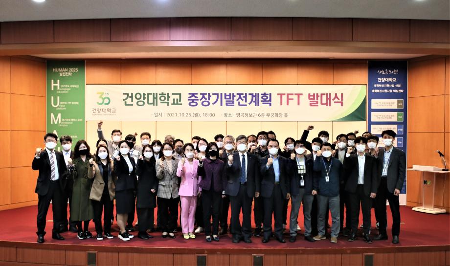 건양대학교(총장 이철성)는 25일 오후 창의융합캠퍼스 무궁화장홀에서 '중장기발전계획 수립을 위한 TF팀 발대식‘을 열고 대학의 미래 비전을 설계하는 중장기 기본계획 구축에 본격적으로 나섰다. 이번 중장기발전계획 TF팀 구성은 학령인구 감소 및 급변하는 대학환경 속에서 대학이 먼저 선제적으로 혁신하고 변화해야 한다는 필요성에 의해 이루어졌다.