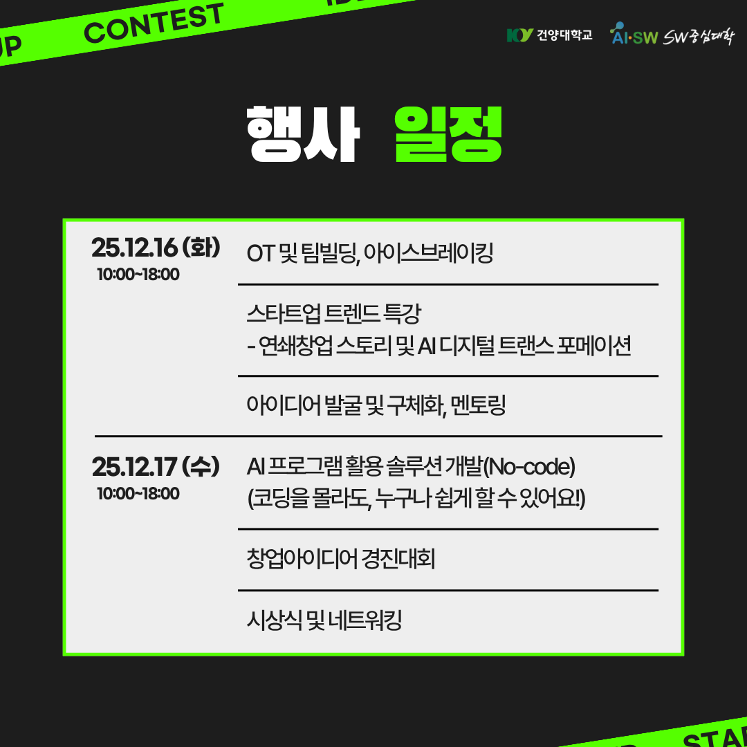 창업 아이디어 경진대회 안내 글의 상세내용